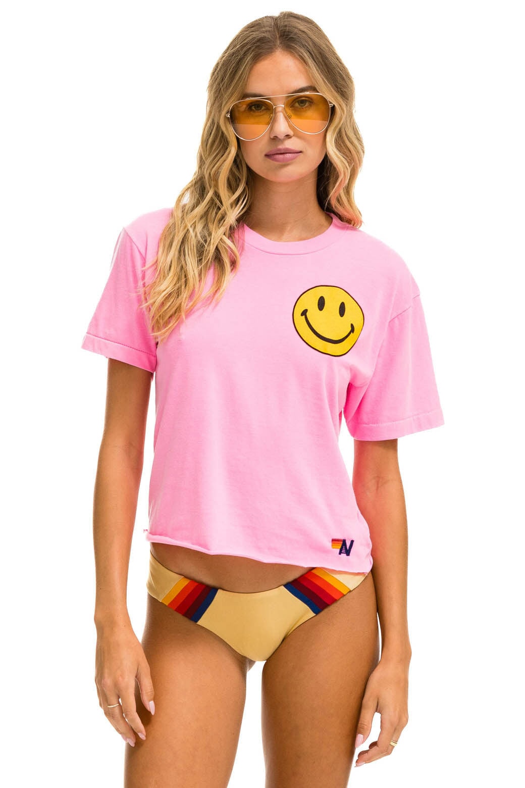 Our boyfriend tees are made to have a slight crop but fit more like our regular tees with a raw hem to top off the vintage feel.?